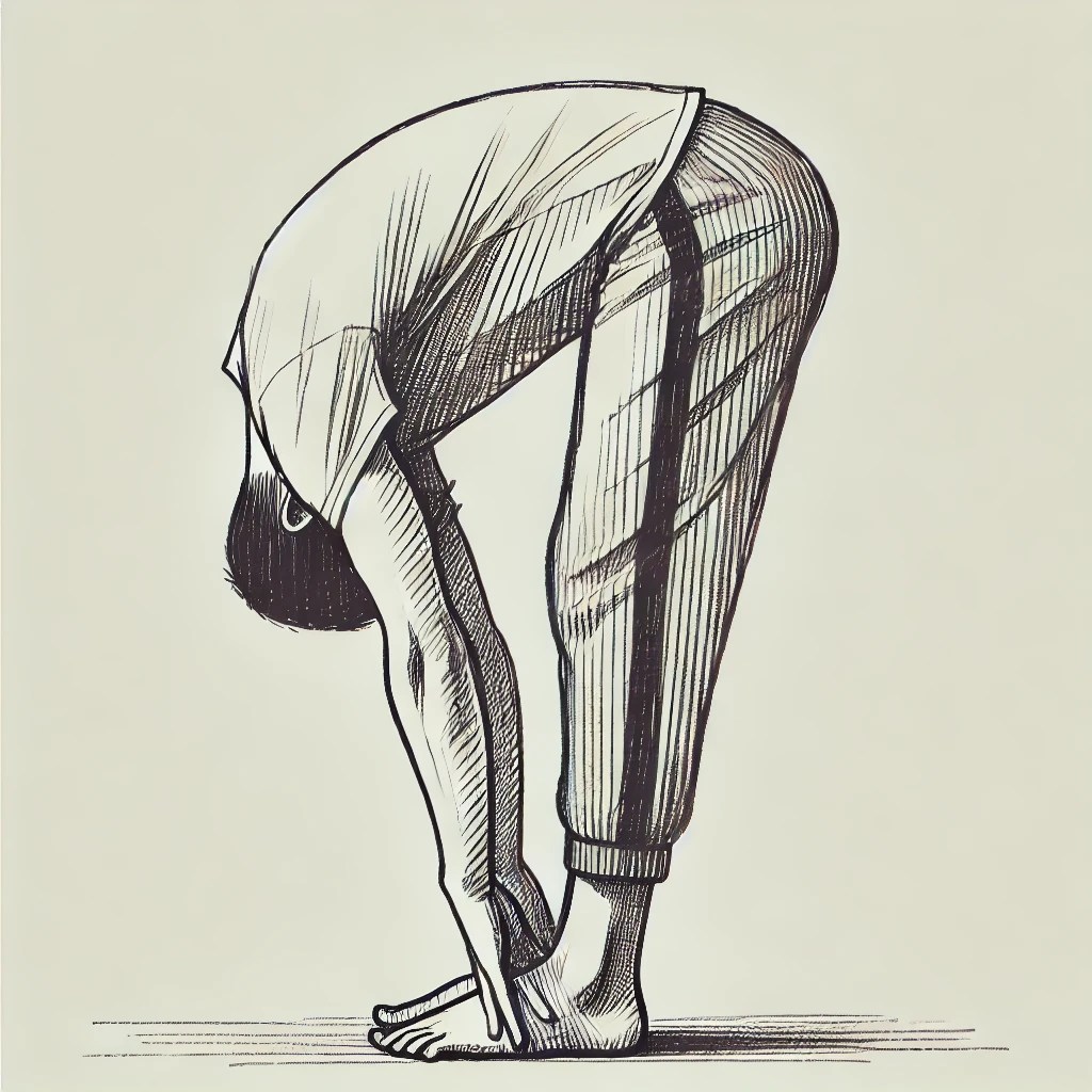 - Beuge dich im Stehen nach vorne und versuche, den Boden mit den Händen zu berühren. Achte darauf, wie weit du kommst und ob du Spannungen in den Beinen oder im unteren Rücken spürst.
